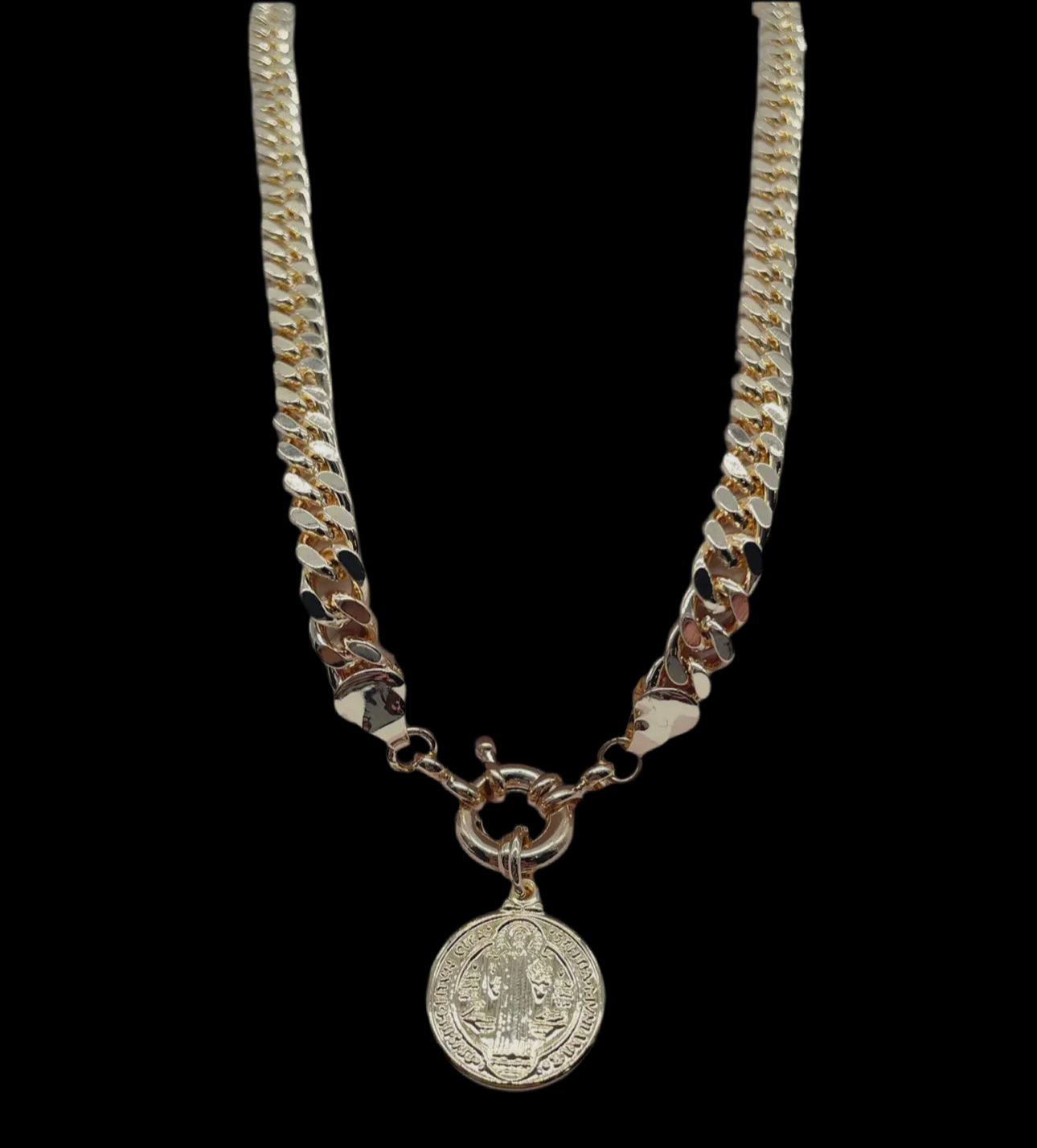 18k Gold plated 6mm Cuban link choker with San Benito charm 16” length